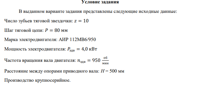 Необходимо на основе исходных данных спроектировать привод цепного транспортера с одноступенчатым цилиндрическим редуктором (прямозубый, внутреннего зацепления), сделать чертеж общего вида привода, отдельных узлов привода (редуктор, звёздочка цепной передачи, приводной вал) и деталей редуктора (валы, зубчатые колеса). Привод крупносерийного выпуска.
