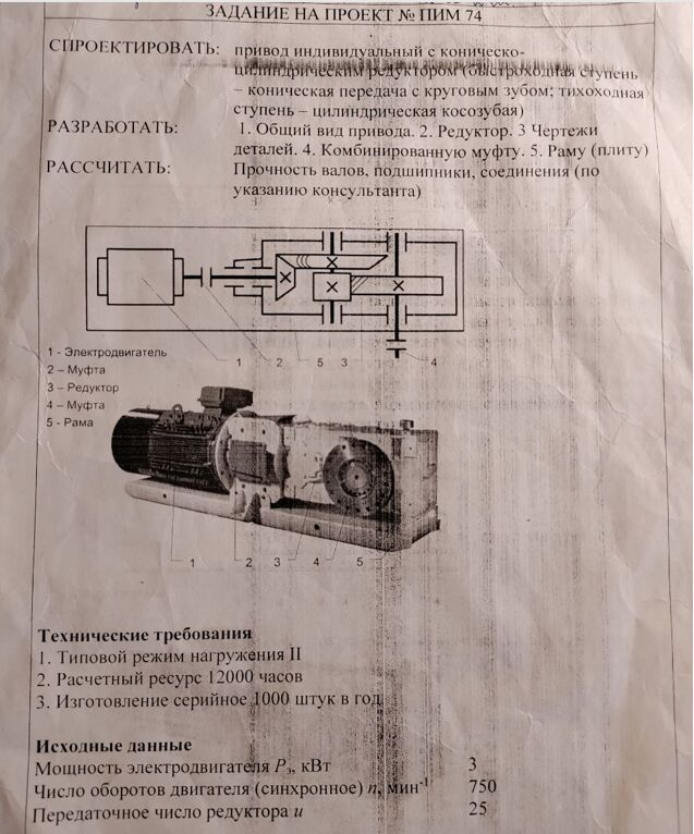 Курсовая работа ПИМ: Привод индивидуальный с коническо-цилиндрическим редуктором (ПИМ74) вариант 74