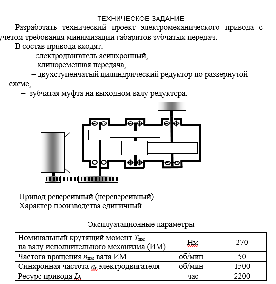 Разработать технический проект электромеханического привода с учётом требования минимизации габаритов зубчатых передач.