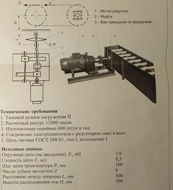Привод цепного транспортера с двухступенчатым цилиндрическим вертикальным соосным однопоточным мотор-редуктором с косозубыми передачами внешнего зацепления курсовая мгту.