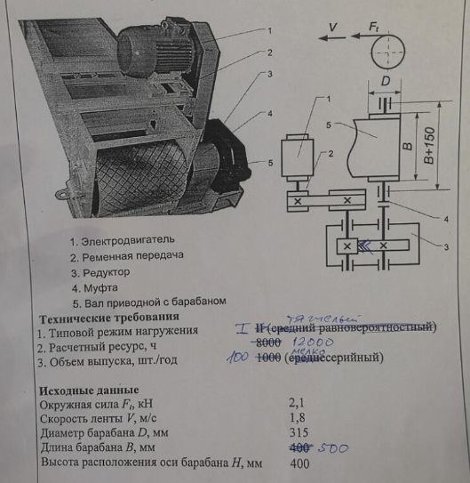 ☀️Привод цепного транспортера с двухступенчатым цилиндрическим редуктором, выполненным по “развернутой схеме (обе ступени прямозубые) и ременной передачей от электродвигателя к редуктору☀️
