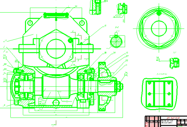 1) Общий вид привода. 2) Редуктор. 3) Чертежи деталей (вал, колесо). 4) муфту. 5) натяжное устройство