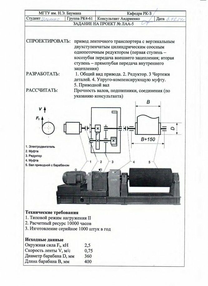 Для студентов МГТУ им. Н.Э.Баумана по предмету Детали машин (ДМ)АЛА-5, Привод ленточного транспортёра вариант 5АЛА-5, Привод ленточного транспортёра вариант 5