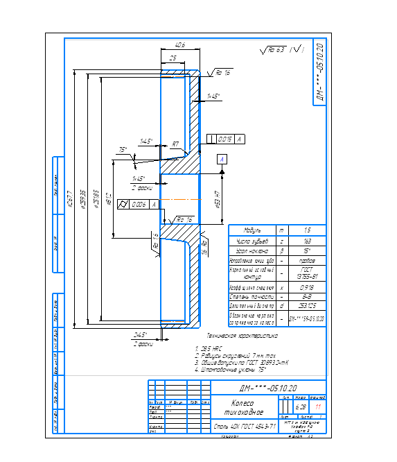 3 Лист представляет собой 3 чертежа : 1) Тихоходный вал; 2)Тихоходное колесо; 3) Муфта