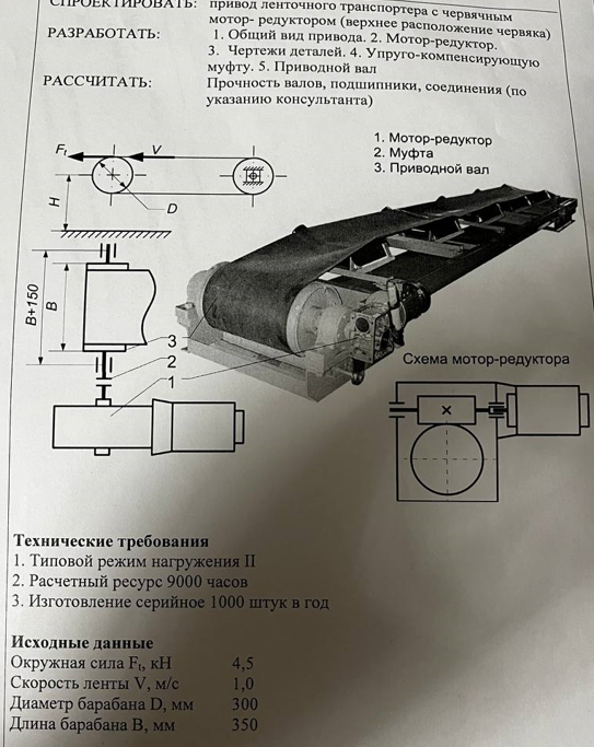 К/Р по теме: "Привод ленточного транспортера с червячным мотор-редуктором (верхнее расположение червяка)".