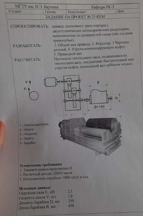 Курсовая работа КЕМ: Привод ленточного транспортёра 25-КЕМ вариант 25