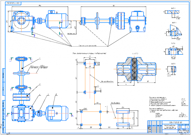 • Пример чертежа : Лист №5 (Общий вид редуктора)