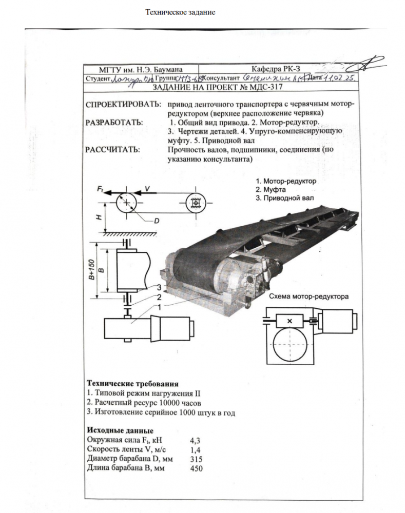 Курсовая работа: Привод ленточного транспортера с червячным мотор-редуктором (верхнее расположение червяка) вариант 317