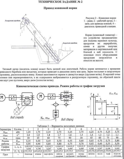 Объект проектирования – привод ковшовой нории, для вертикального транспортирования сыпучих и кусковых грузов. Цель проектирования – выполнить расчет и конструирование механических передач и их элементов с целью обеспечения работоспособности привода ковшевой нории.