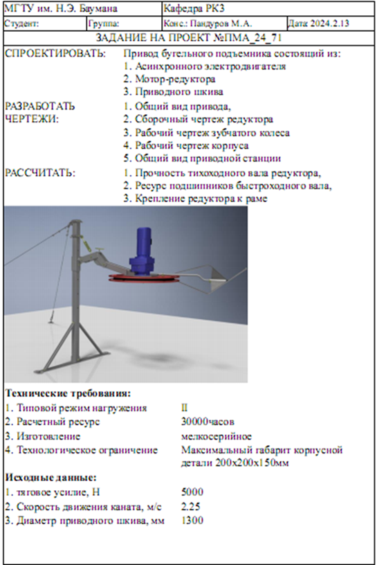 Задание на проект №ПМА_24_71 Спроектировать привод бугельного подъемника, состоящий из: