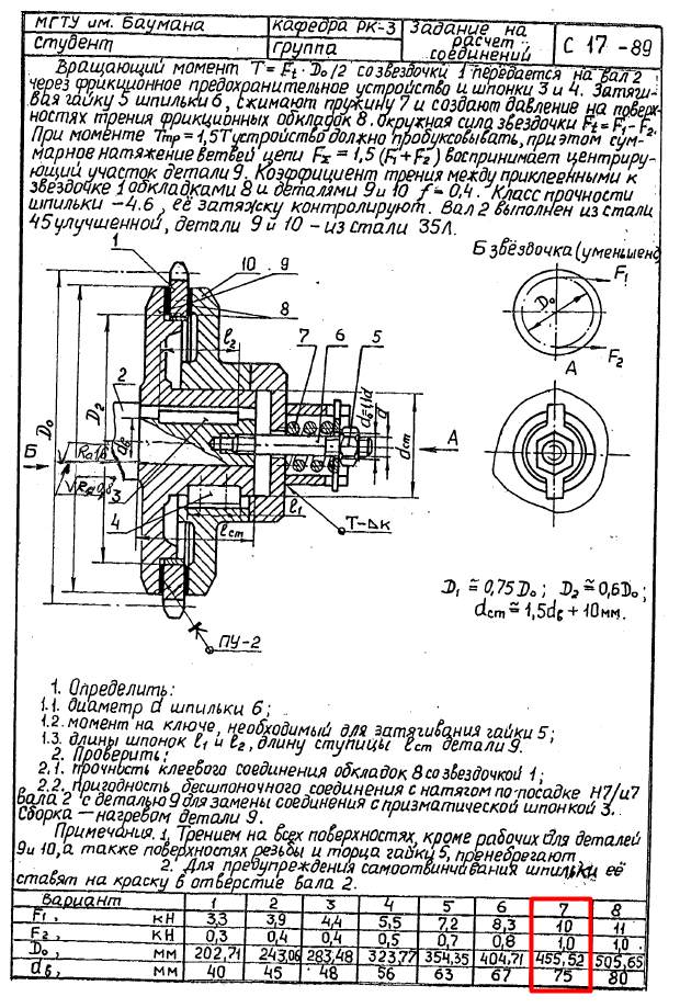 ДЗ С-17: Расчет соединений вариант 7