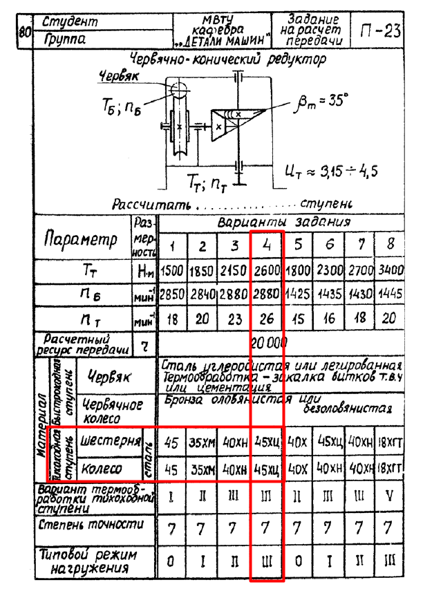 ДЗ П-23: Расчет передачи вариант 4