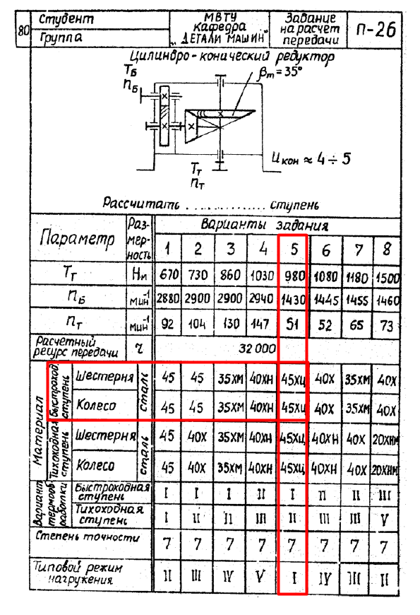 ДЗ П-26: Расчет передачи вариант 5