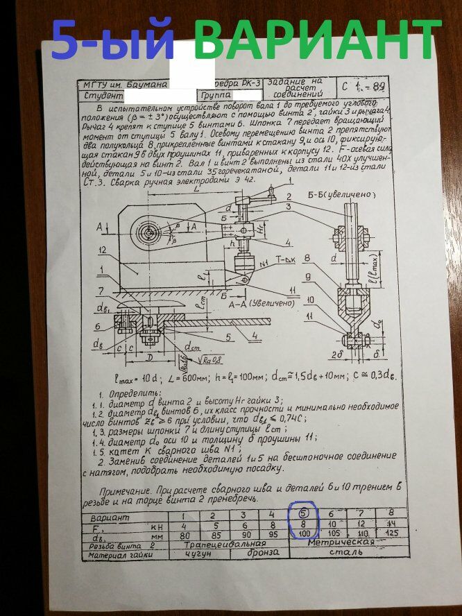 С 1 - 89 (5 Вариант) "Задание на расчёт соединений", потрачено около 24 часов на поиск всех параметров для всех маркировок деталей. Описан каждый шаг действия и формулы. Когда будете защищать ДЗ преподу будет очень легко (если конечно до этого прочтёте, то что написали)) )