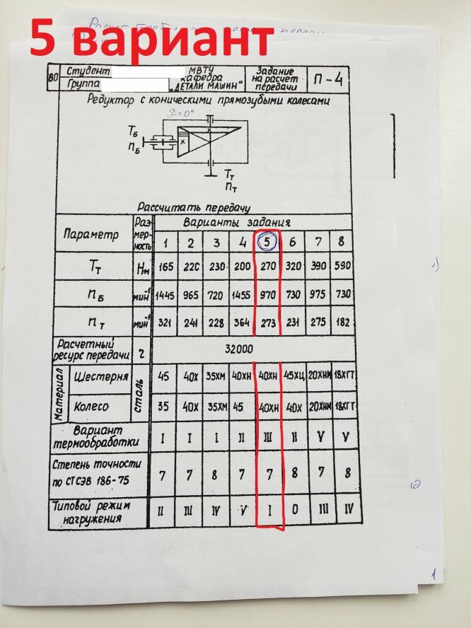 П-4 (5 Вариант) Расчёт Редуктор с коническими прямозубыми колесами