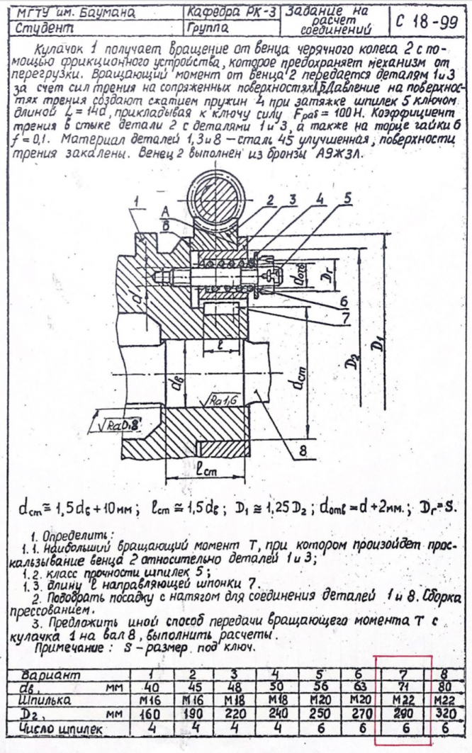 ДЗ С-18: Расчет соединений вариант 7