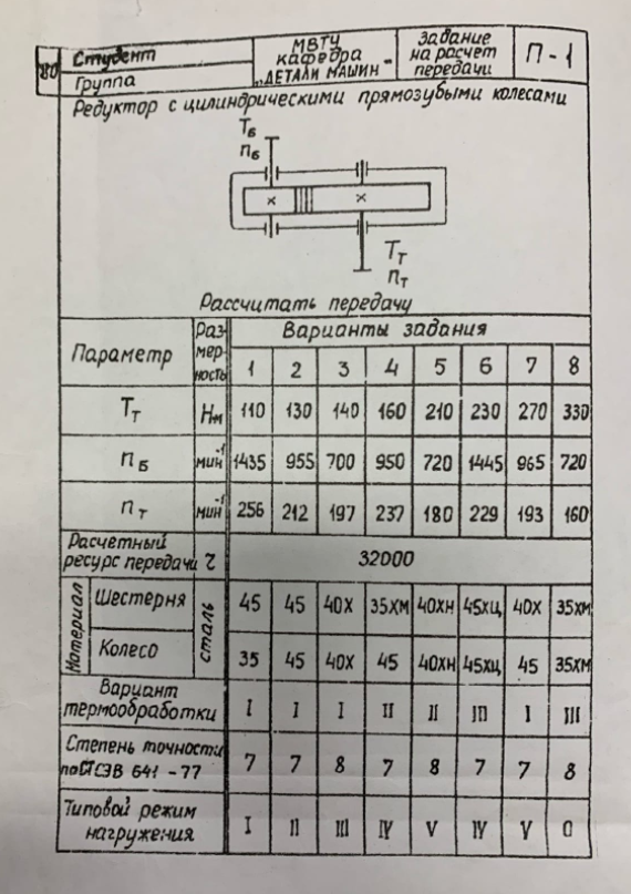 ДЗ П-1: Расчет передачи вариант 7