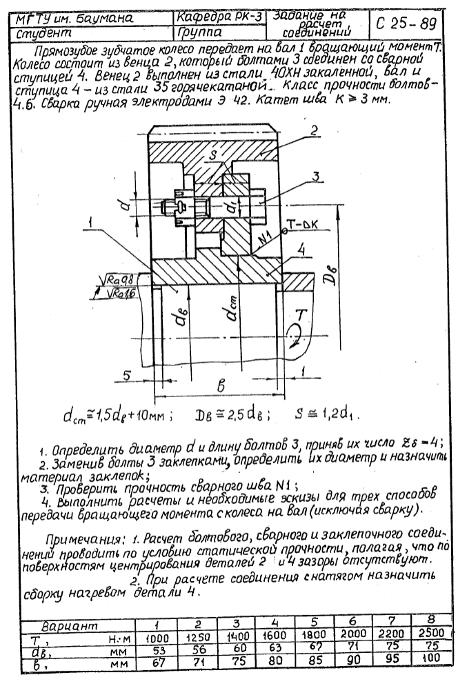 ДЗ С-25: Расчет соединений вариант 1