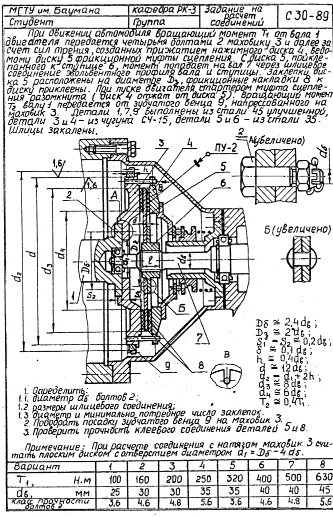 ДЗ 1 по ДетМашу "Расчёт соединений" вариант С30-89 (7)