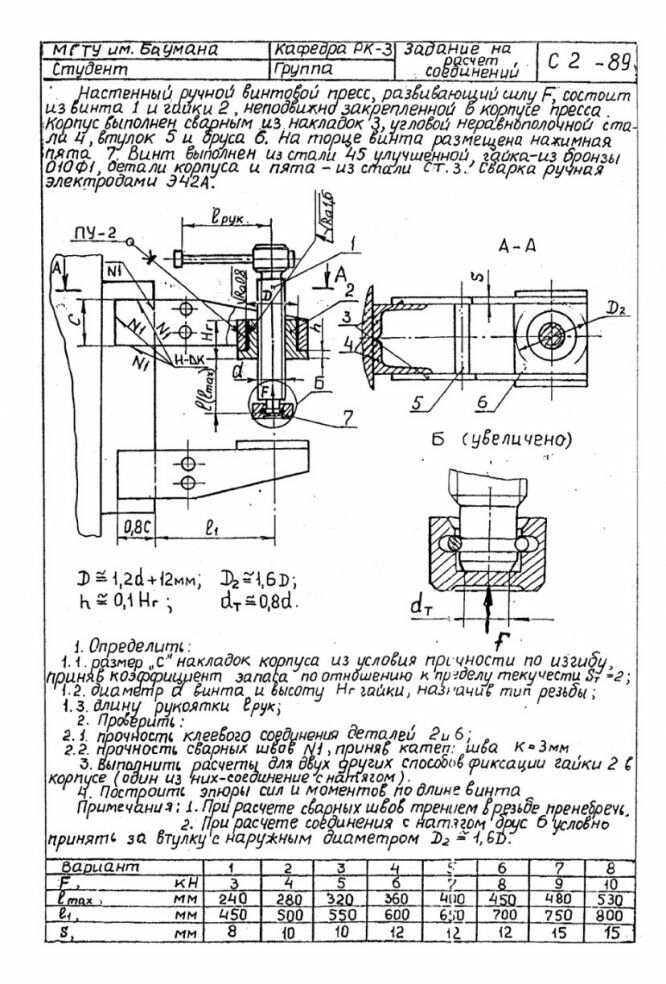 ДЗ С-2: Расчет соединений вариант 2