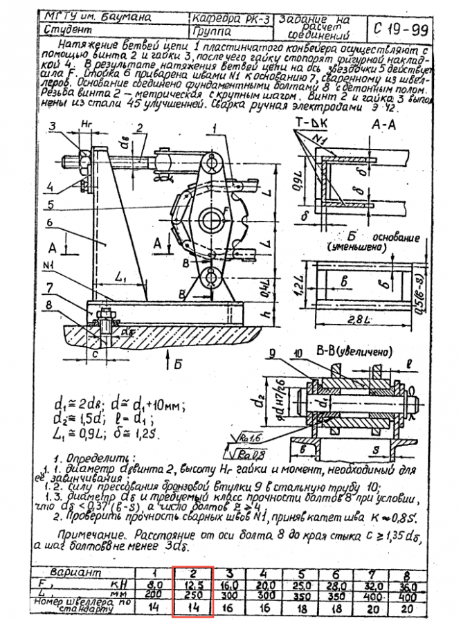 ДЗ С-19: Расчет соединений вариант 2