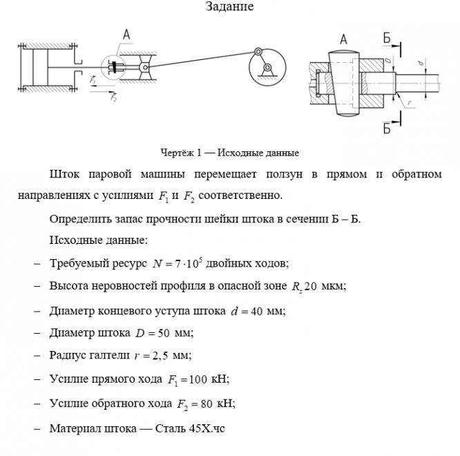 Для студентов СПбПУ Петра Великого по предмету Детали машин (ДМ)Проверочный расчёт на выносливость штока паровой машиныПроверочный расчёт на выносливость штока паровой машины