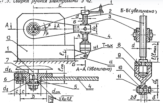 Примечание. При расчете сварного шва и деталей 6 и 10 трением в резьбе и на торце винта 2 пренебречь.