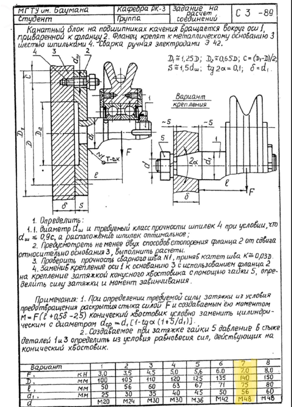 ДЗ 1 по Деталям машин 3 курс Расчёт соединений С-7