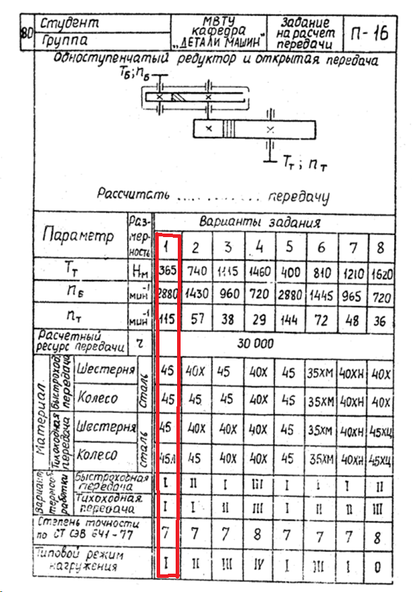 ДЗ П-16: Расчет передачи (быстроходная) вариант 1
