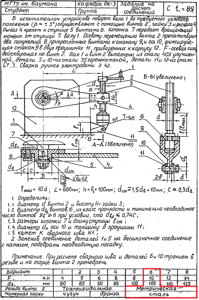 ДЗ С-1: Расчет соединений вариант 6