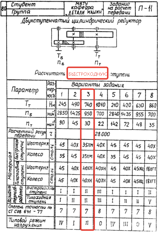 Решение домашнего задания на расчет передачи П-11, вариант 3, БЫСТРОХОДНАЯ ступень. Задание выполнено в Word и Компас-3D. Прикреплен PDF-файл.