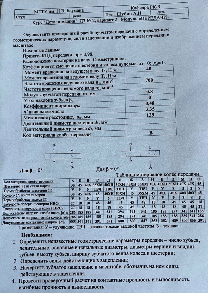 Для студентов МГТУ им. Н.Э.Баумана по предмету Детали машин (ДМ)Расчет передачиРасчет передачи