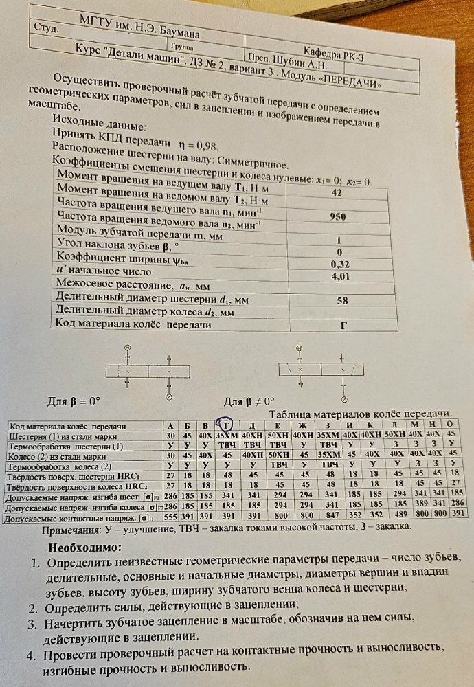 Для студентов МГТУ им. Н.Э.Баумана по предмету Детали машин (ДМ)Расчет передачиРасчет передачи