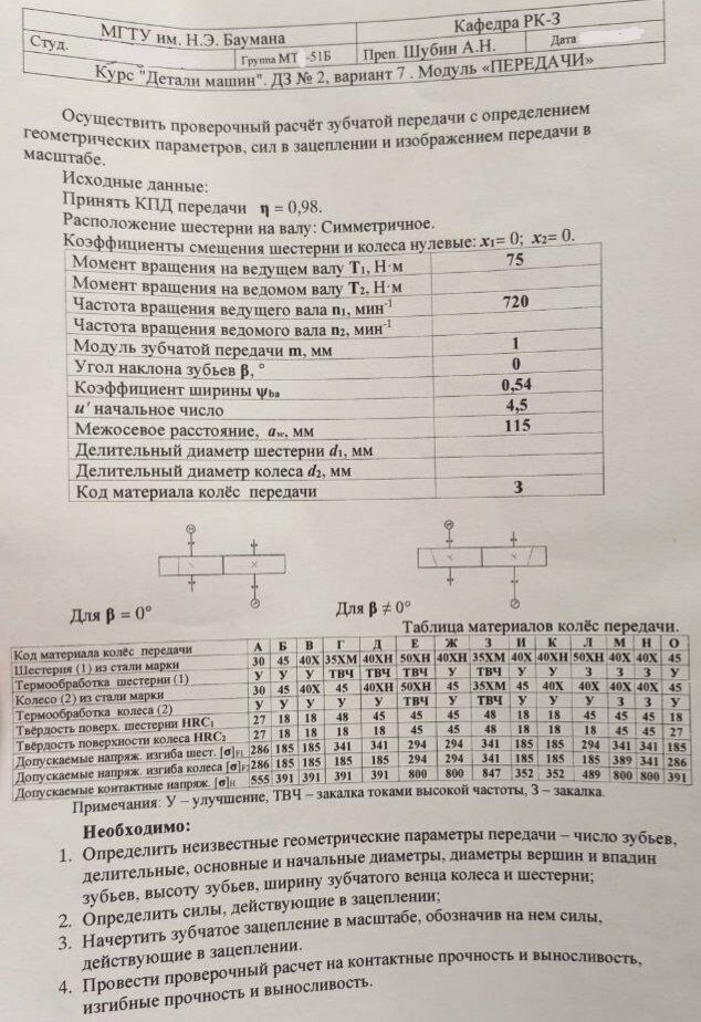 Для студентов МГТУ им. Н.Э.Баумана по предмету Детали машин (ДМ)Расчет передачиРасчет передачи