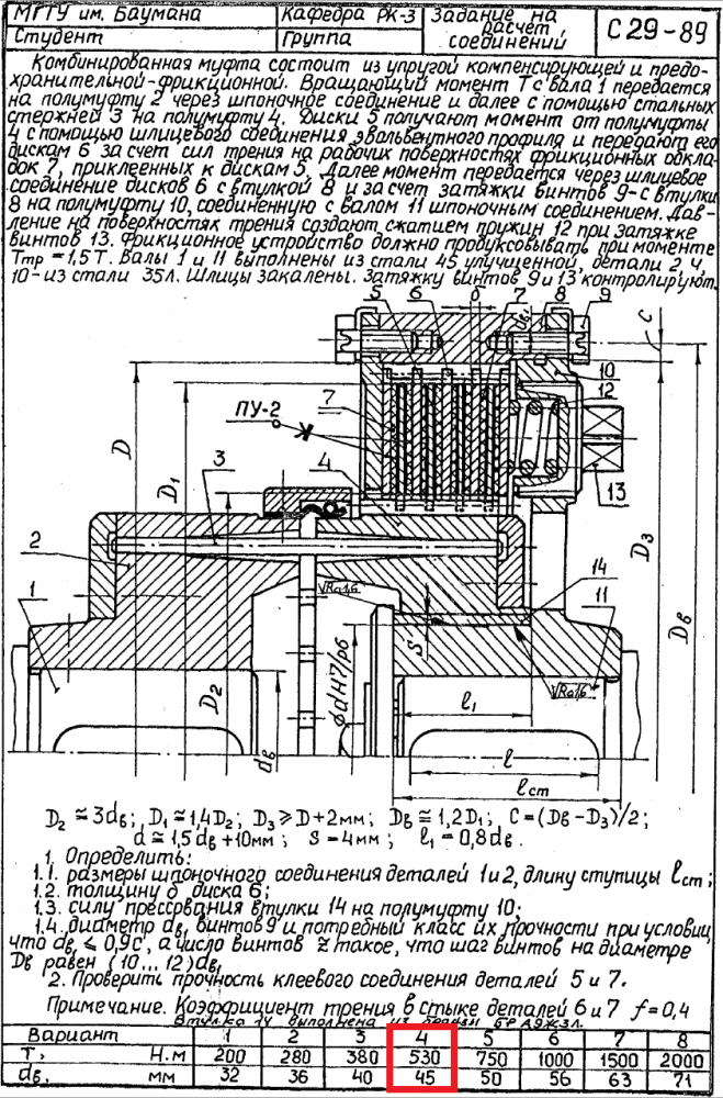 Комбинированная муфта состоит из упругой компенсирующей и предохранительной-фрикционной.