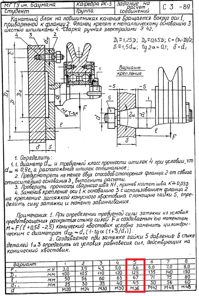 ДЗ С-3: Расчет соединений вариант 5