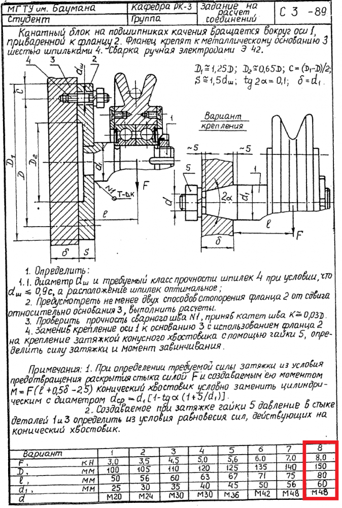 ДЗ С-3: Расчет соединений вариант 8