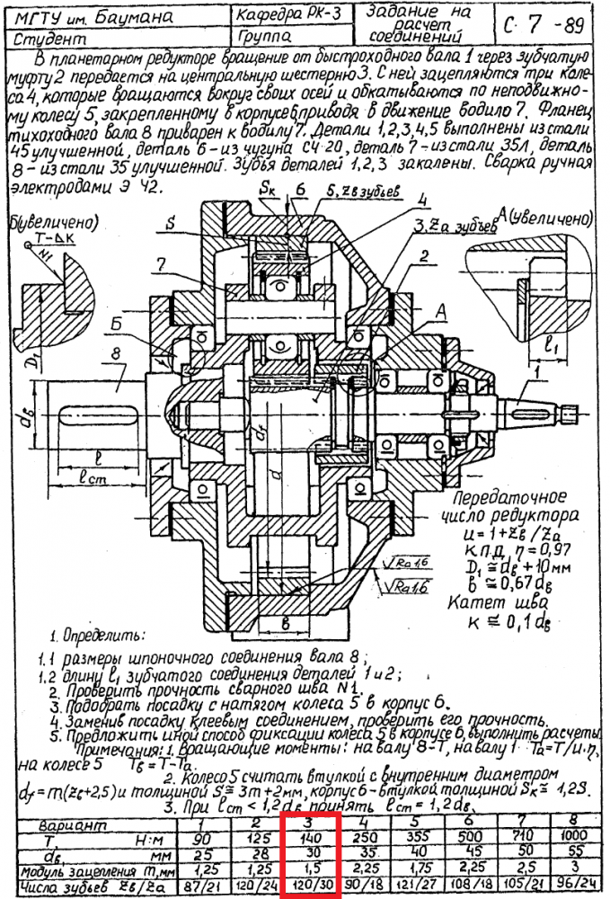 ДЗ С-7: Расчет соединений вариант 3
