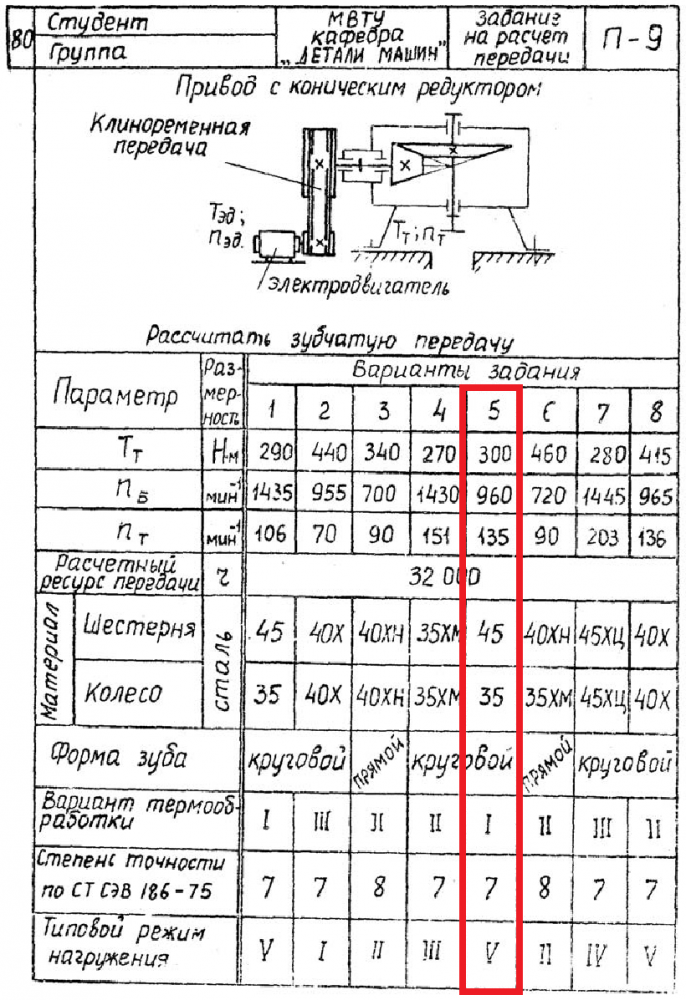 ДЗ П-9: Расчет передачи вариант 5