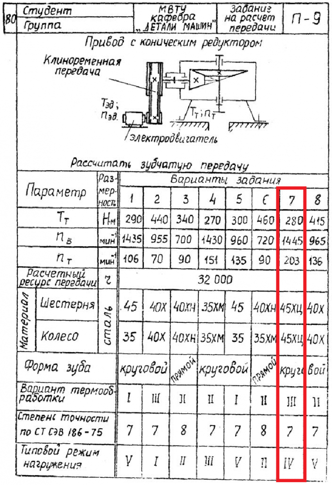 Привод с коническим редуктором рассчитать коническую зубчатую передачу.