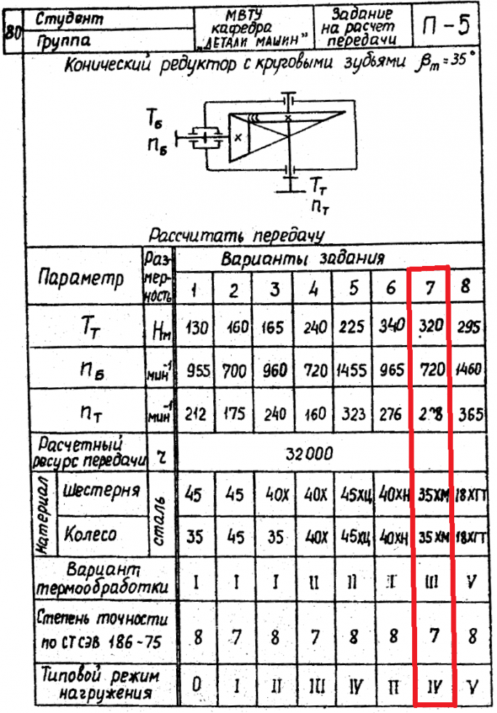ДЗ П-5: Расчет передачи вариант 7