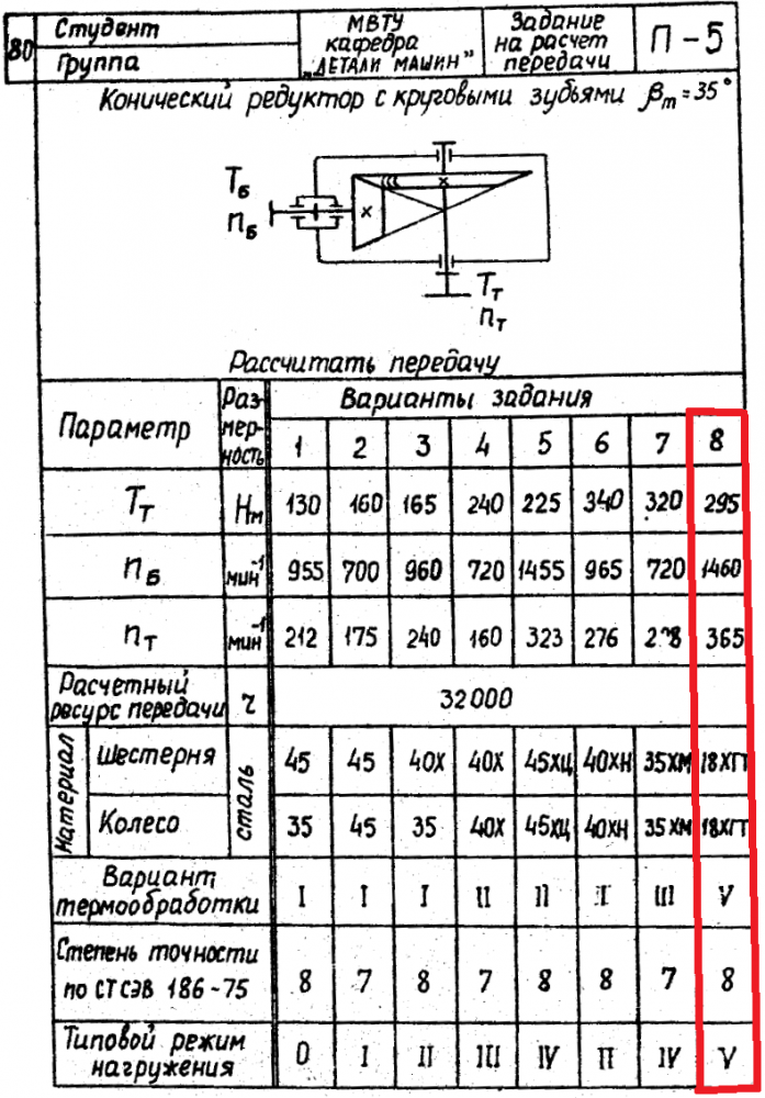 ДЗ П-5: Расчет передачи вариант 8