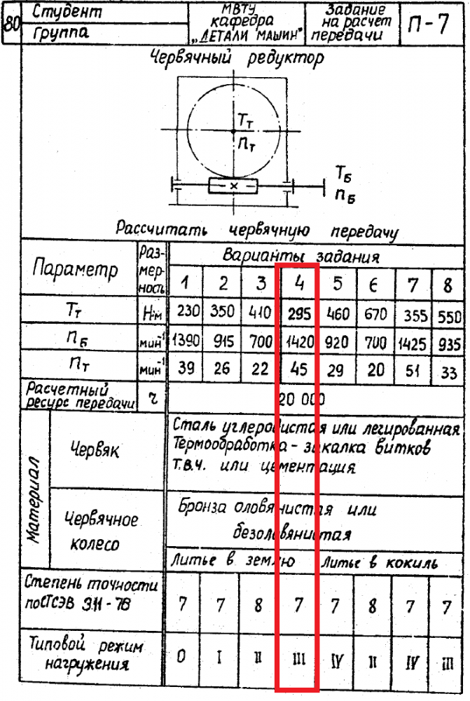 ДЗ П-7: Расчет передачи вариант 4