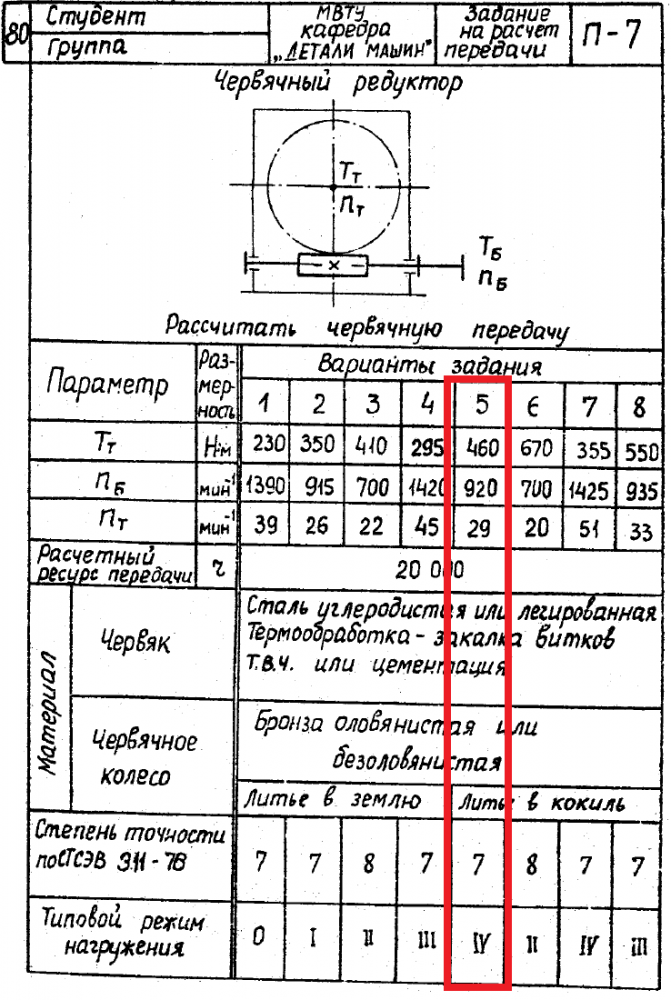 ДЗ П-7: Расчет передачи вариант 5
