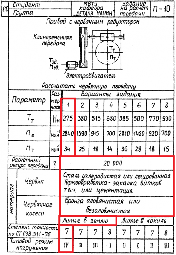 ДЗ П-10: Расчет передачи вариант 1