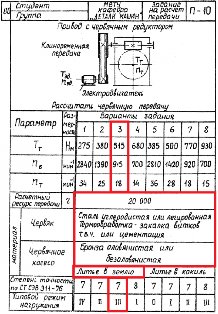 ДЗ П-10: Расчет передачи вариант 3