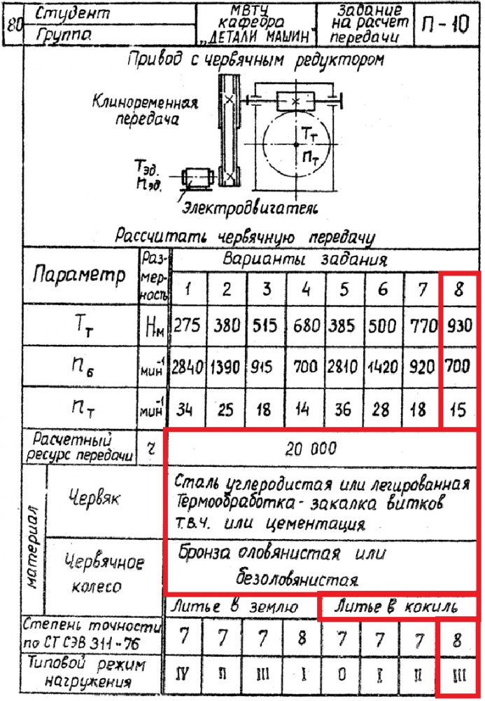 ДЗ П-10: Расчет передачи вариант 8