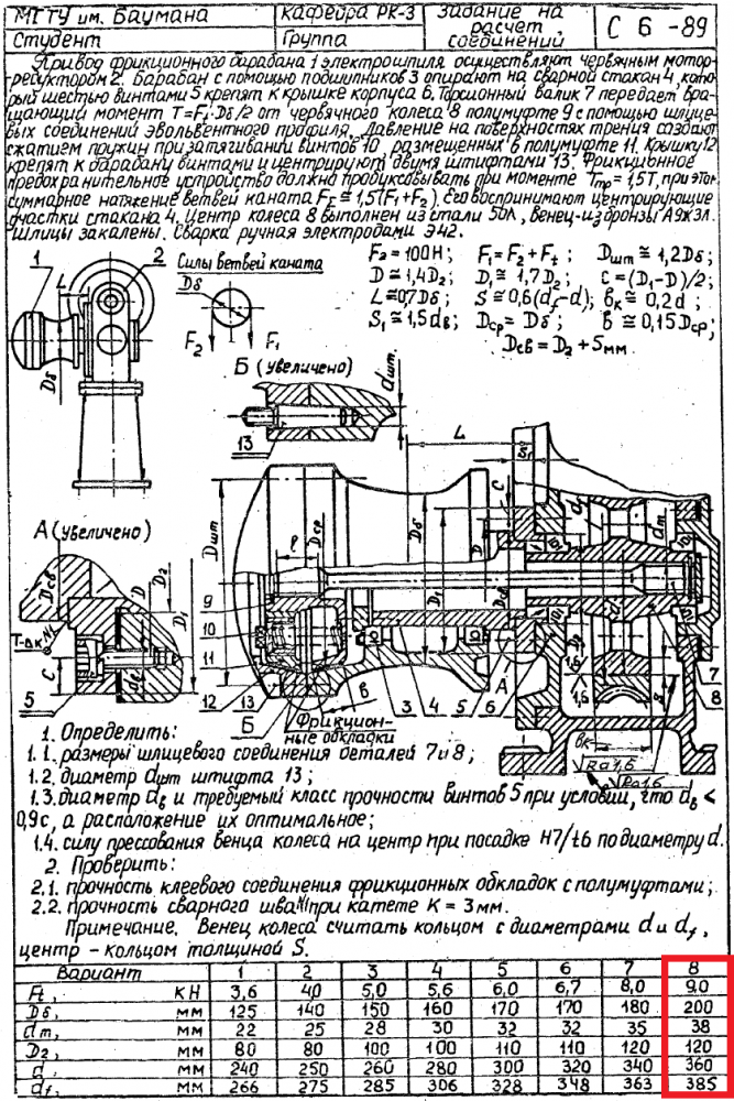 ДЗ С-6: Расчет соединений вариант 8