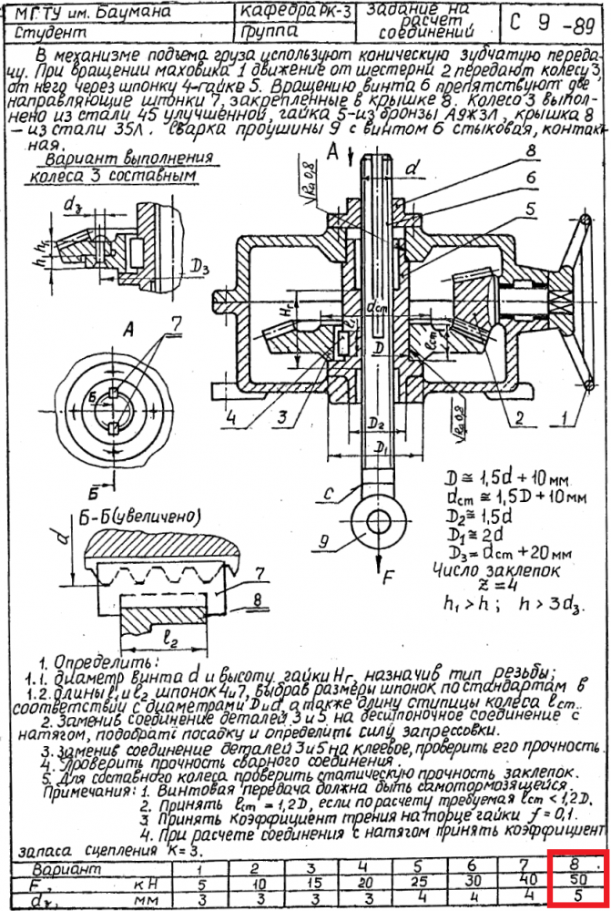ДЗ С-9: Расчет соединений вариант 8