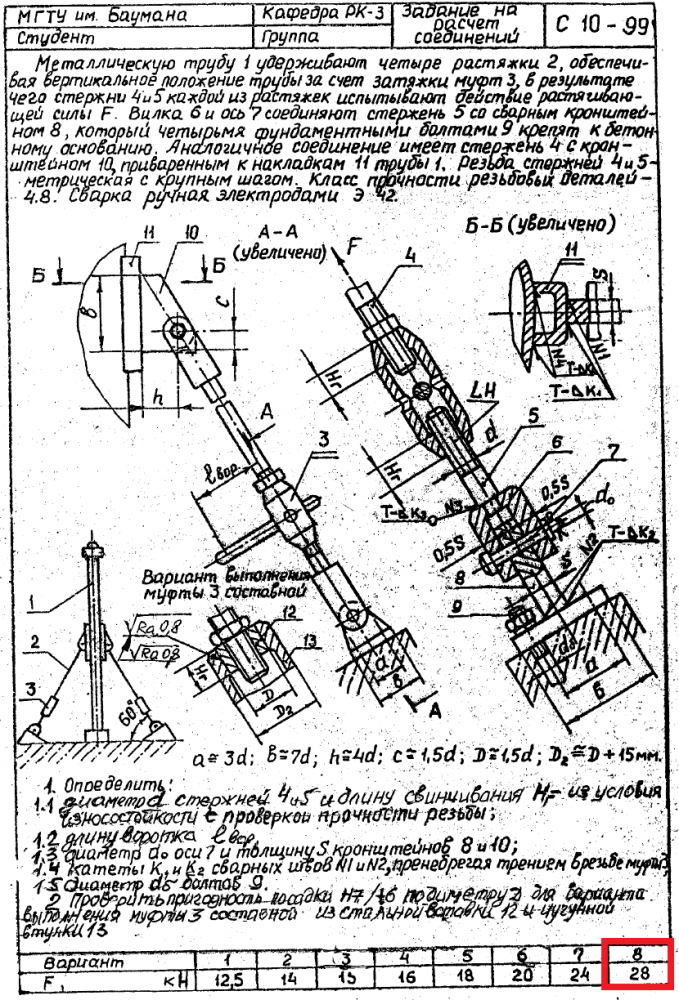 ДЗ С-10: Расчет соединений вариант 8